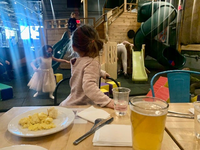 So when Mel found a bar a short uber rider away that stated it had an indoor playground in it, cold beer, and a Sunday brunch special, it didn’t take long for us to be speeding along the freeway north in its direction.