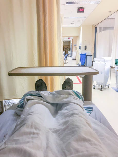 Today, at the hospital, I proceeded with caution and wore my underwear underneath the gown. The thinking was that maybe I’d have an opportunity to remove that last layer later—who knows how long I’ll be waiting?—or maybe they’d do it for me.