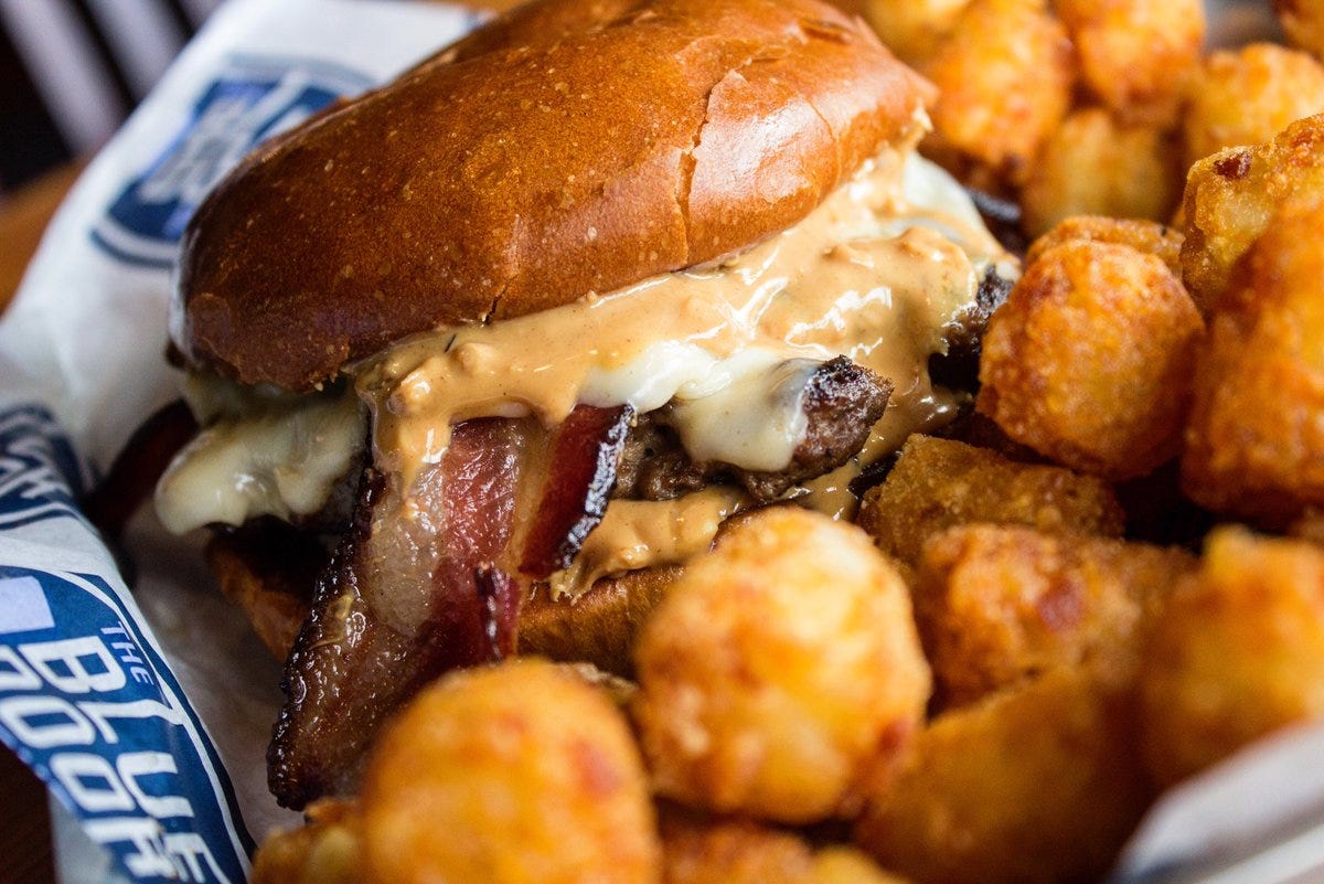 After my jaw assumed its natural position, I started to process what was unfolding in my mouth. The swirls of velvety peanut butter interloping with the juices from the meat and the pungent blue cheese. The latter almost strong-arming both into submission.