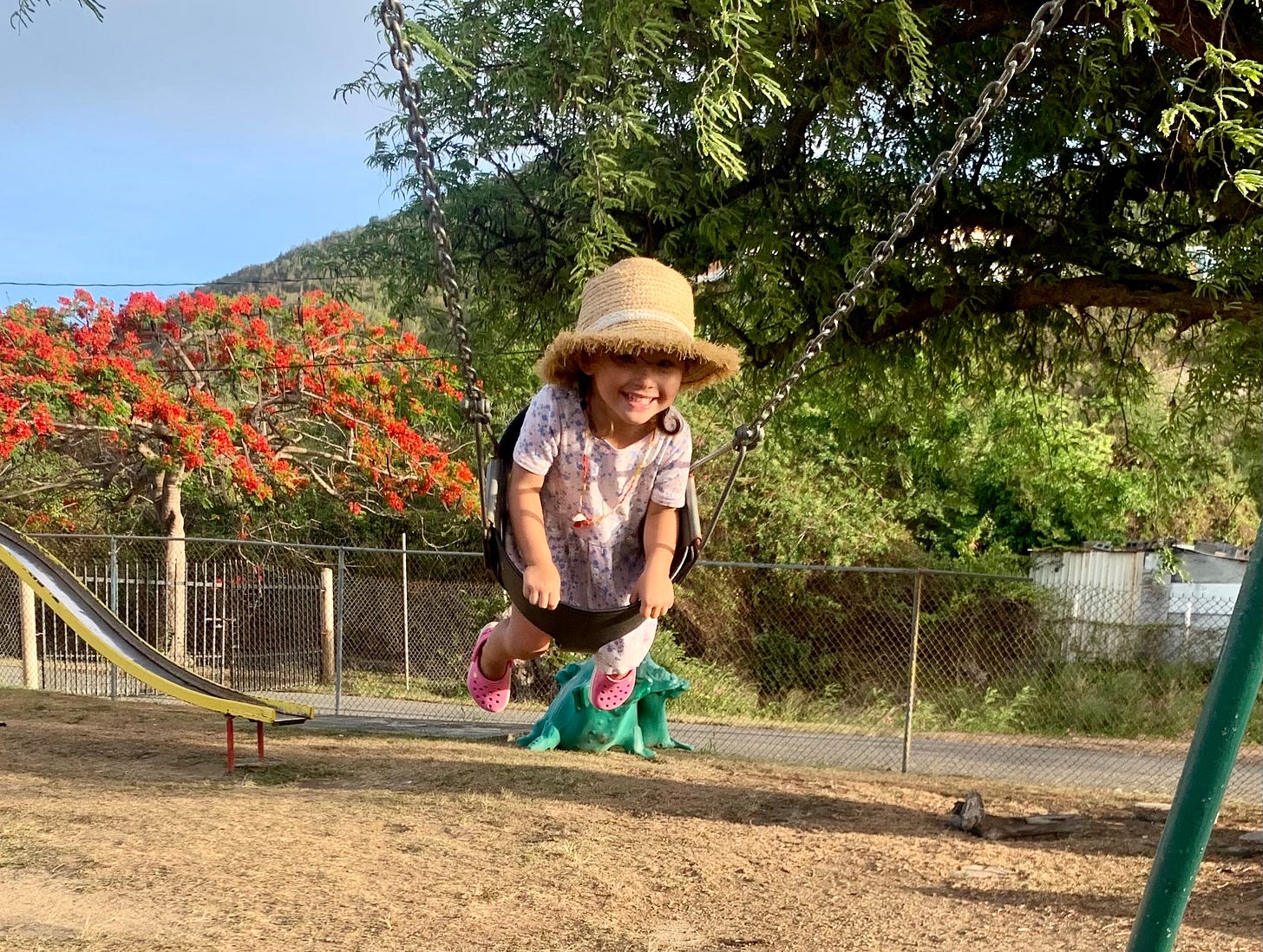 Maala followed her swinging mate over to the jungle gym, and so did I and my new playground mate. Two mismatched adults, from different generations, paired together for the afternoon.